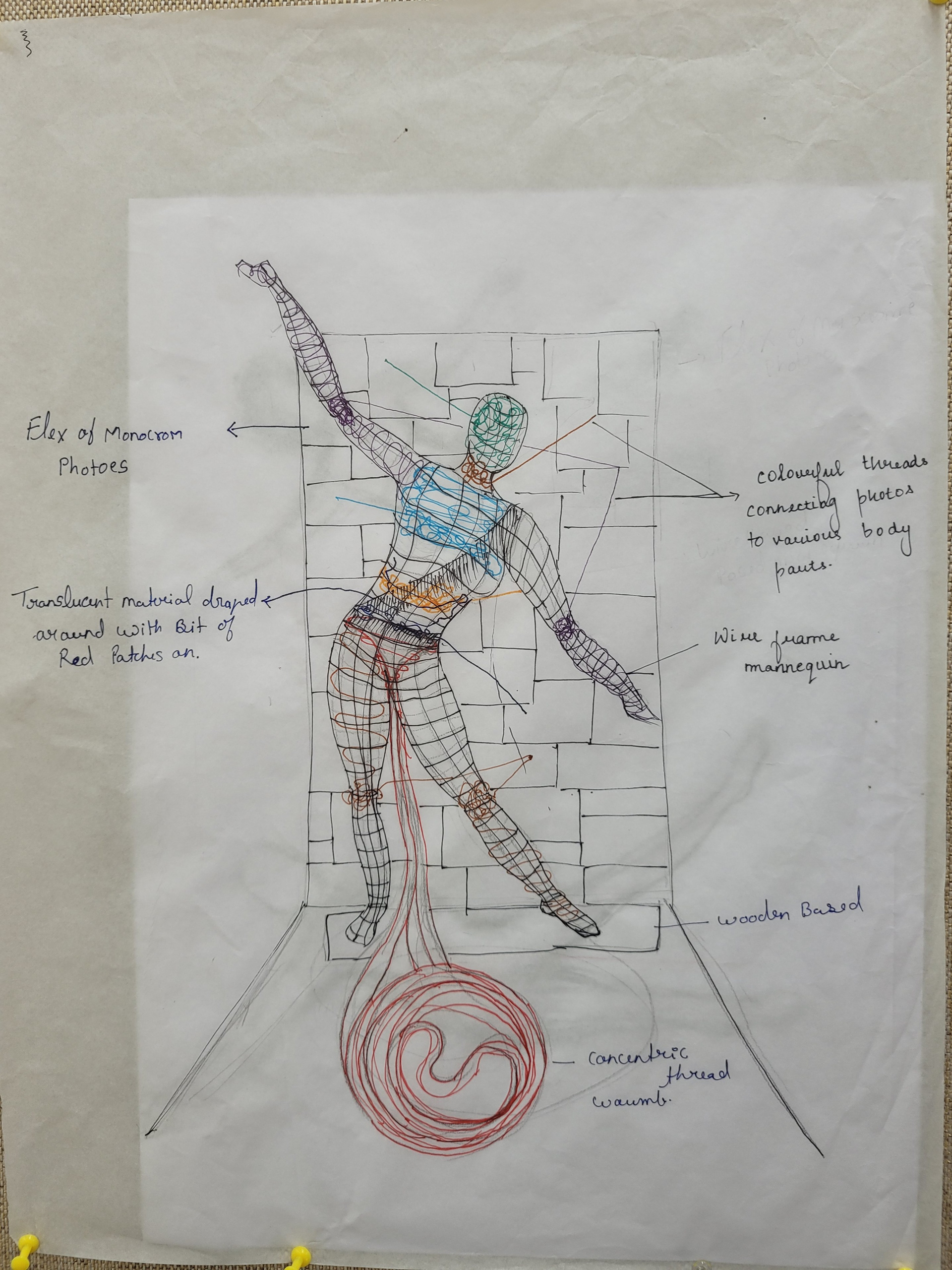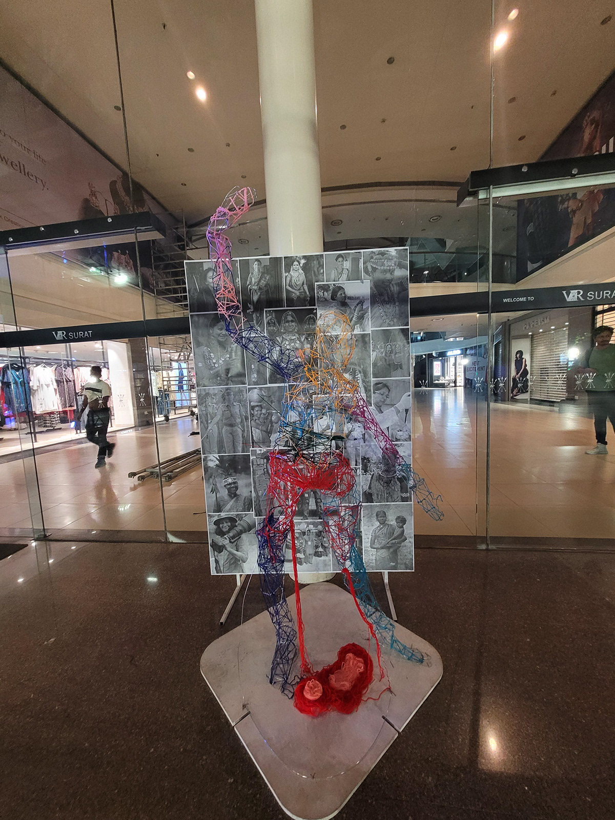 This installation was done as a collaboration between Auro School of Design and Kamakhya India for the Dumas Art Project - 2023 to create awareness about menstrual health among the masses. The installation depicts the idea of 'Different Faces and One Body'