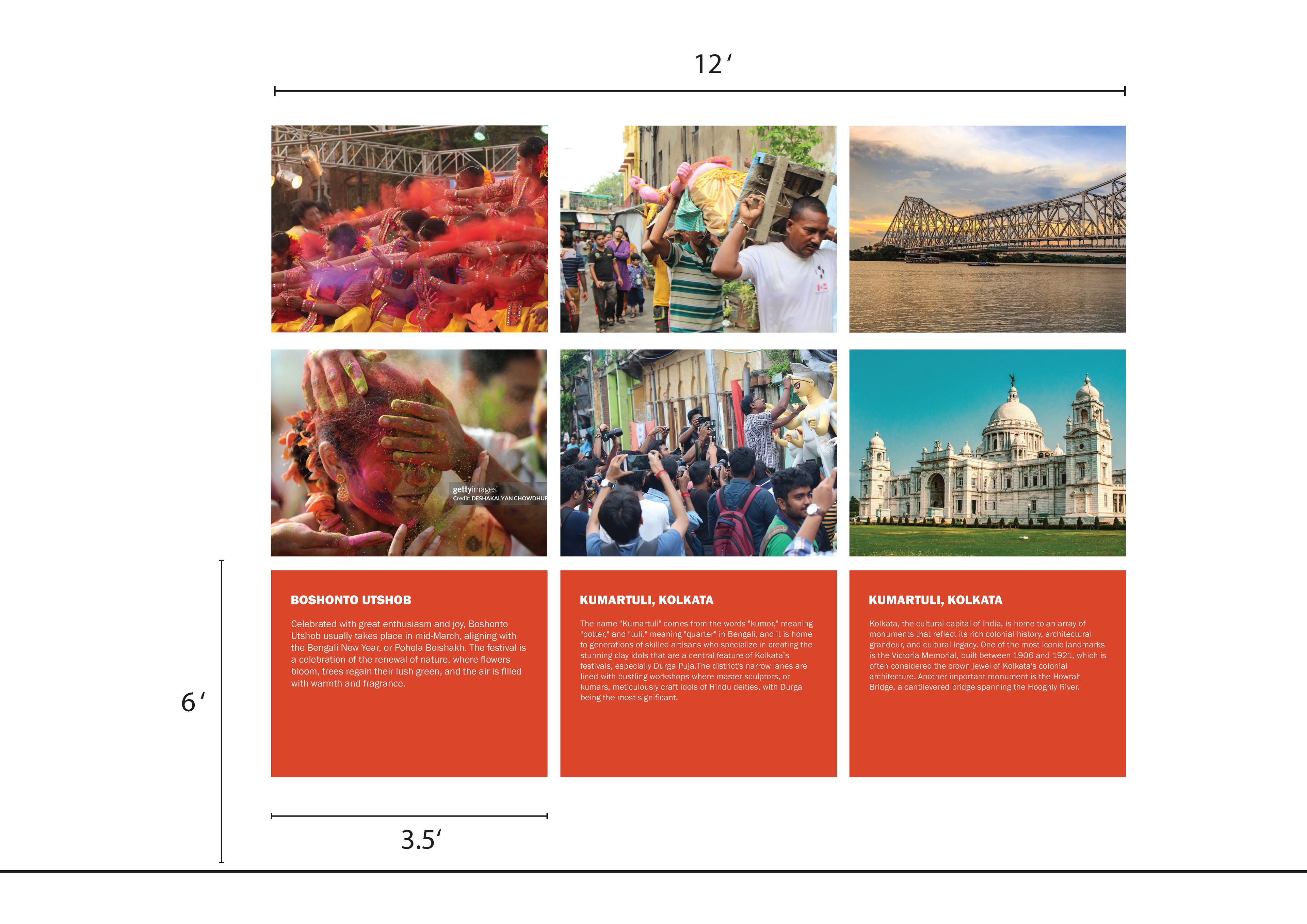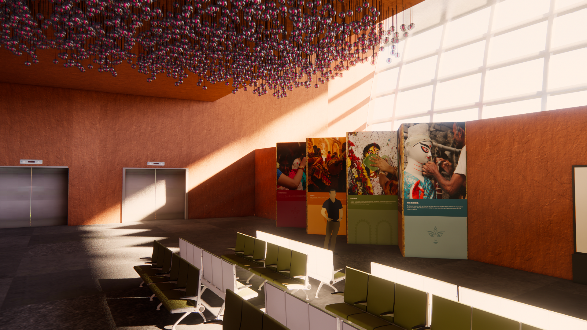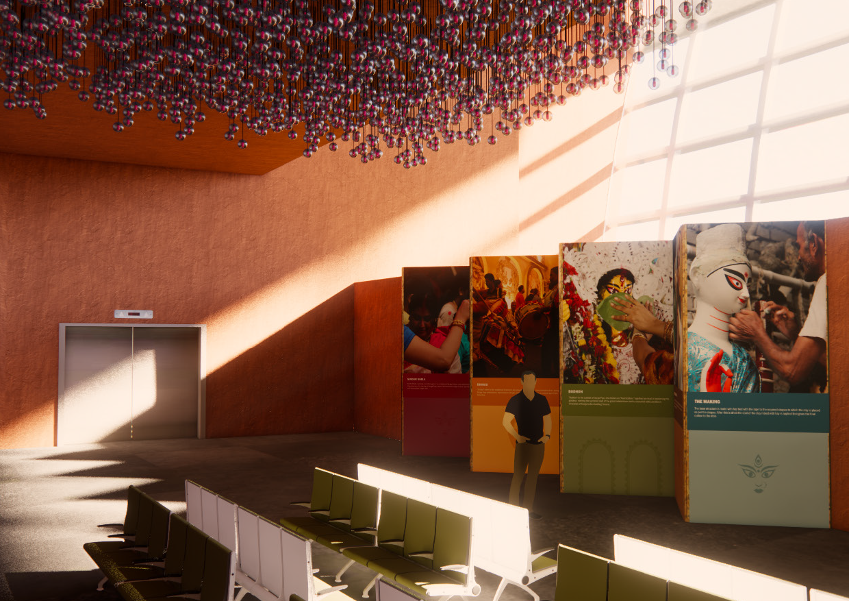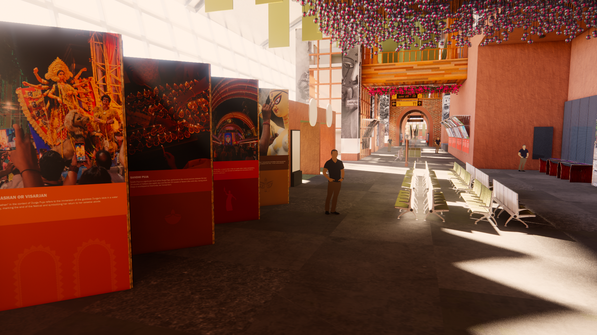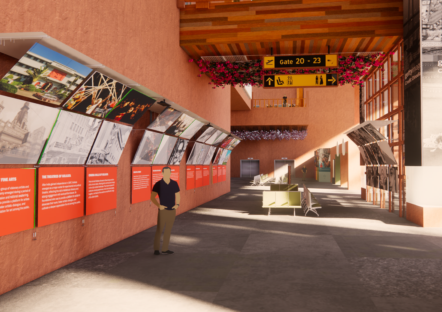 The concept of placemaking and narrative branding within the airport aims to transform the space into a comforting and engaging environment that eases the stress often associated with air travel. By integrating an experiential exhibition into the terminal, passengers are invited to momentarily disconnect from the chaos of transit and immerse themselves in the culture and stories of Kolkata. This thoughtful intervention not only enhances the aesthetic and emotional atmosphere of the airport but also turns waiting time into a moment of reflection, discovery, and connection.