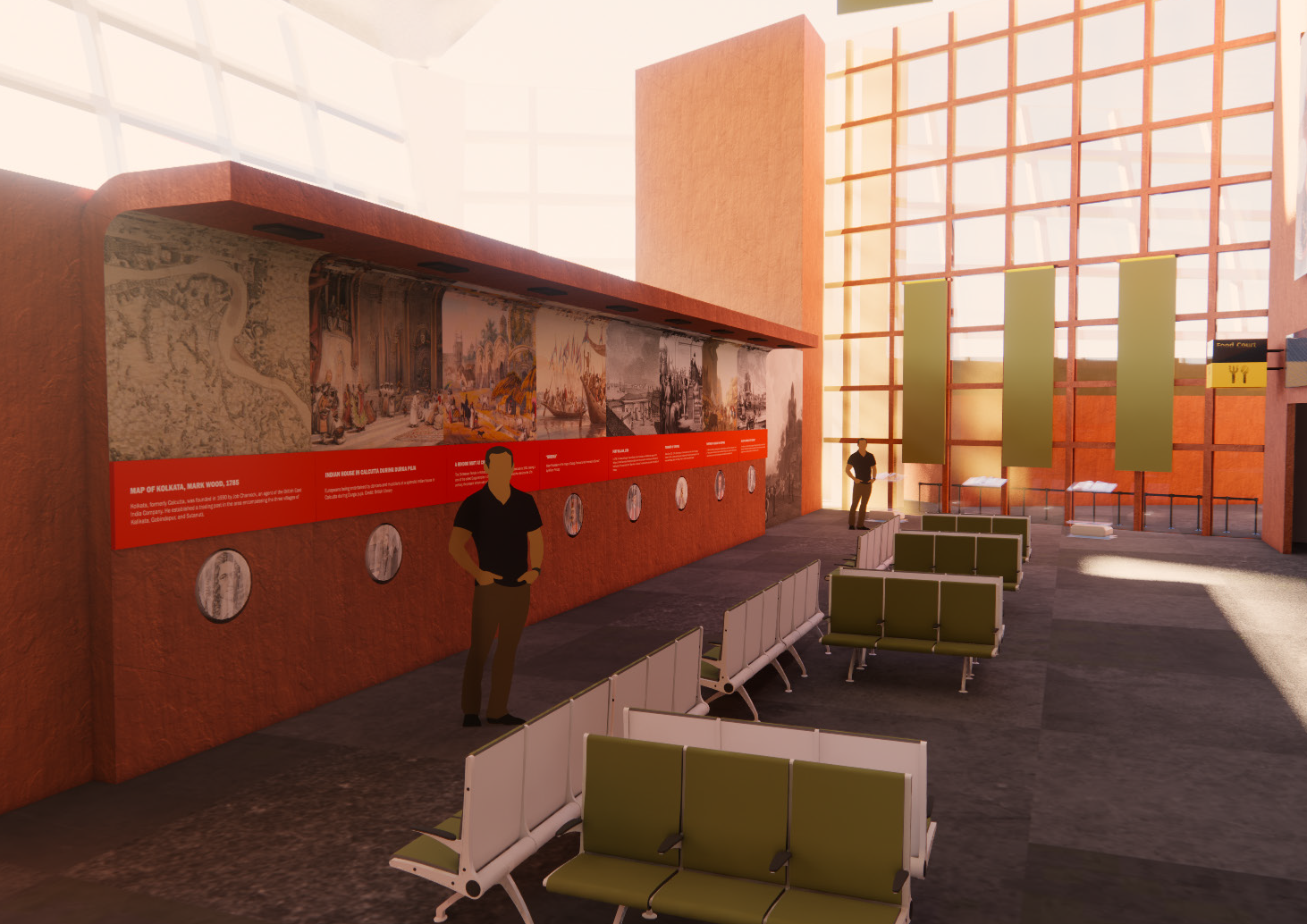 This design project envisions an experiential museum within the Netaji Subhas Chandra Bose International Airport, Kolkata, India. The space is conceived as an immersive narrative journey that traces the city’s evolution — from its pre-colonial origins and colonial legacy to its emergence as a dynamic, vibrant city. Using curated visuals, spatial storytelling, and interactive design, the museum aims to celebrate Kolkata’s rich cultural heritage while offering travellers a meaningful connection to the city’s timeless spirit.