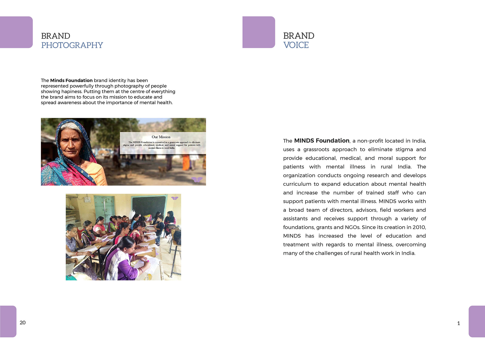 Complete brand guidebook for the Minds Foundation rebranding project.