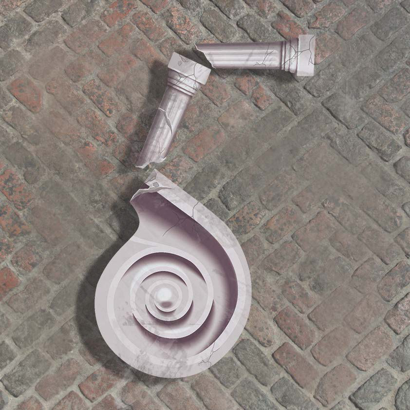 Typography experiment using roman ionic pillars. Elements from roman ionic pillars have been used to form these numerical figures.