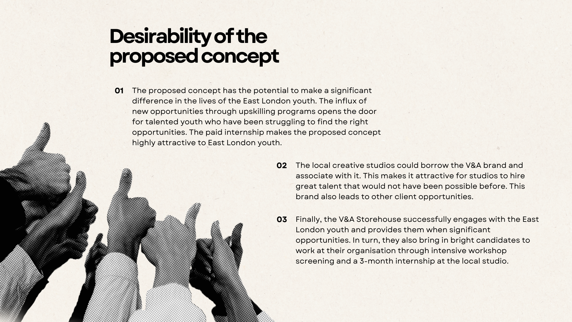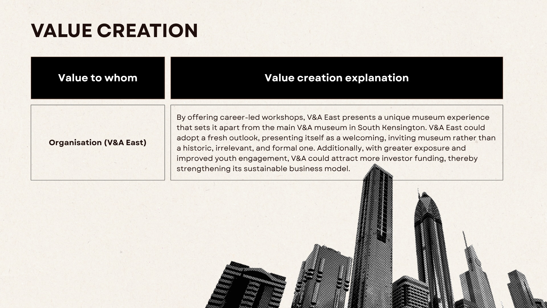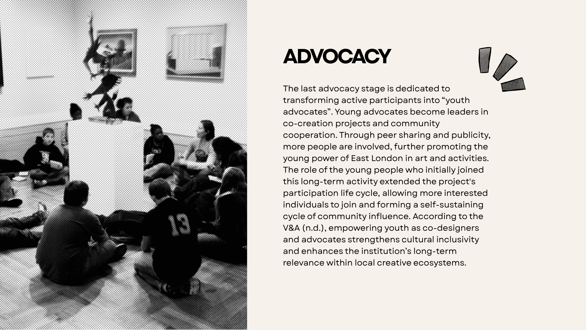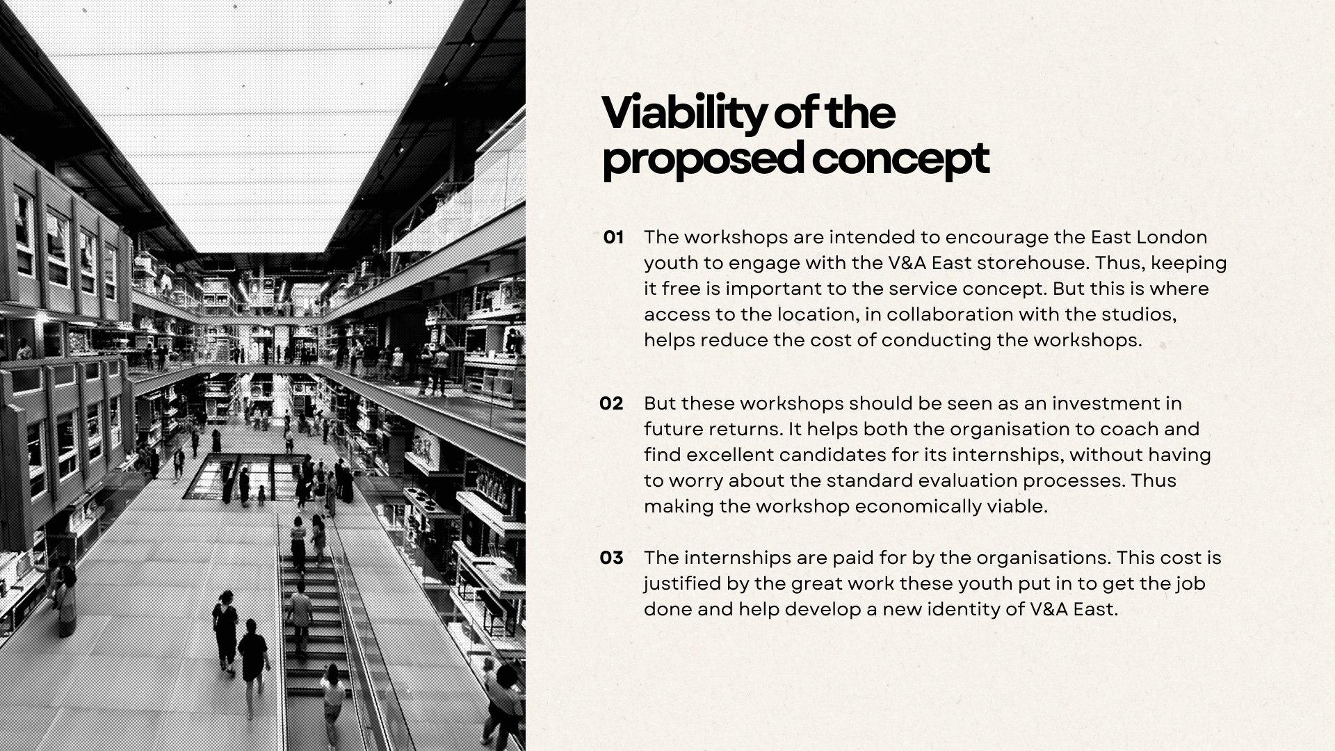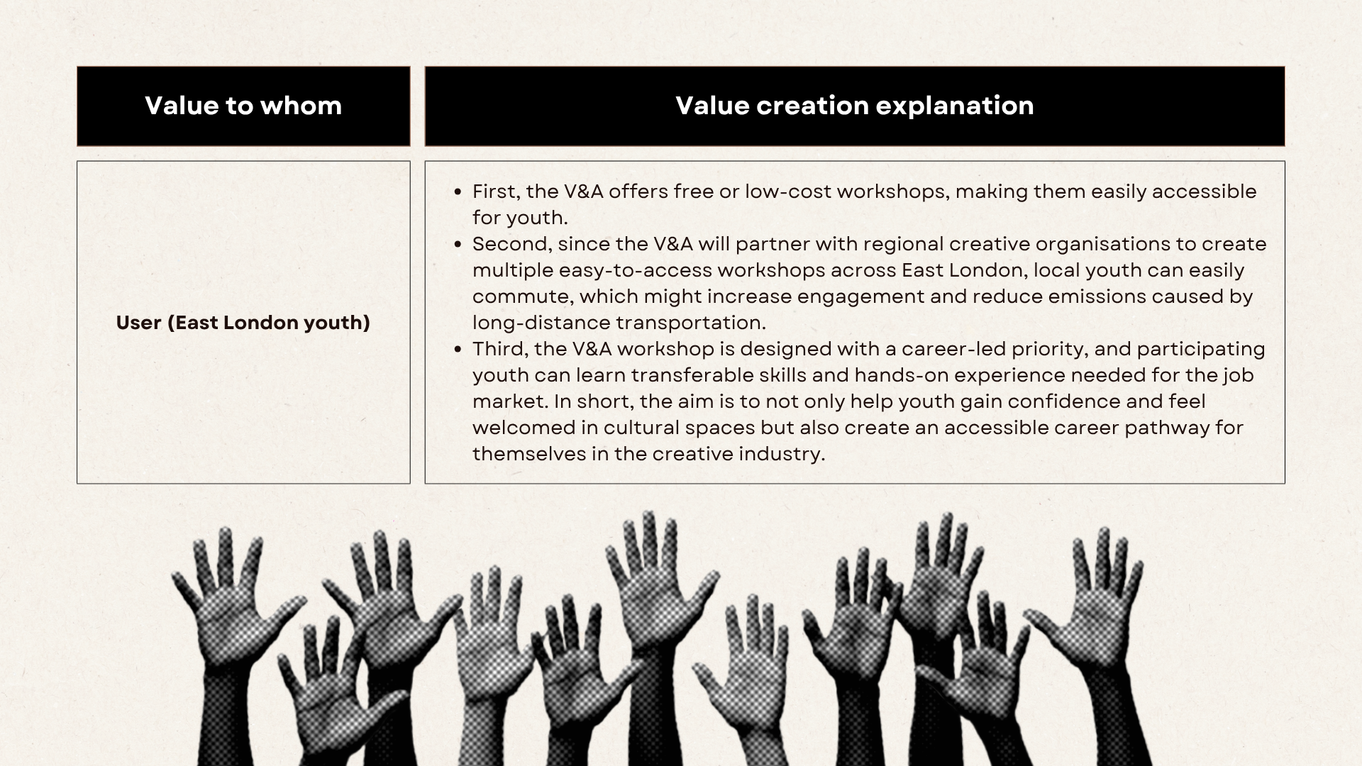 This service introduces The Youth Workshops, an interactive, co-designed workshop model specifically developed to support V&A East’s mission of making the Storehouse a meaningful and engaging space for East London youth between the ages of 16 and 25.